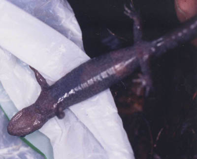 急斜面を歩いていて、落ち葉の層がめくれ、中から冬眠中、または準備中のサンショウウオが出てきてしまった、ごめんなさい。撮影後逃がしました。