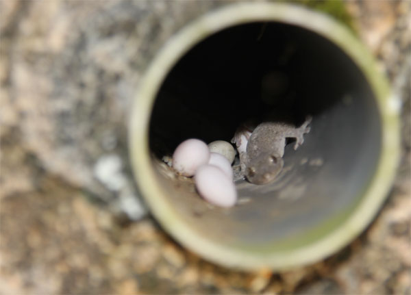 排水管の中のヤモリの撮影を試みましたが、カメラは嫌いなようです。