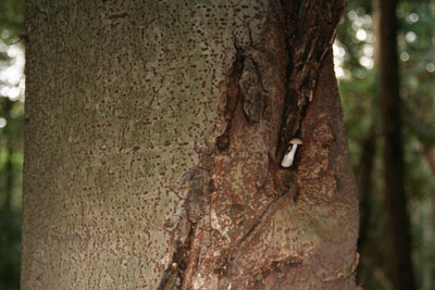 傘の径は2−3センチほどです。 小型ですが傘の模様から判断してブナシメジに思えます。