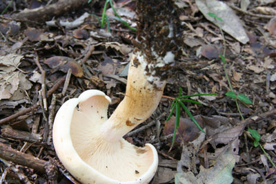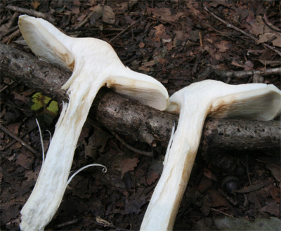 | この生長段階ではひだは白色 | 肉質は固く、締まっている。 |