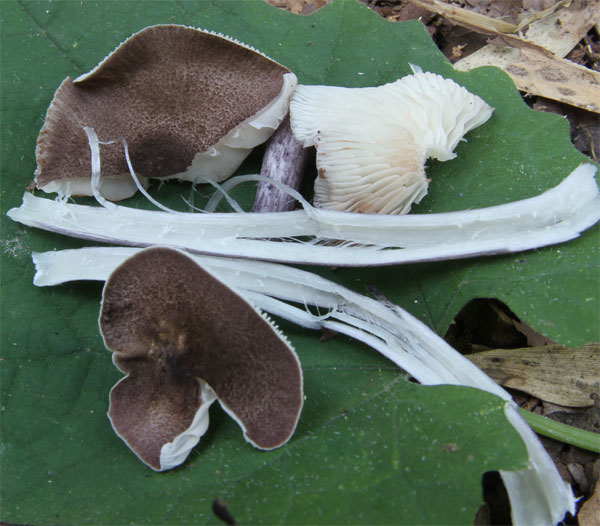 傘の中心部の色は濃く 周辺部には僅かに条線?が見える