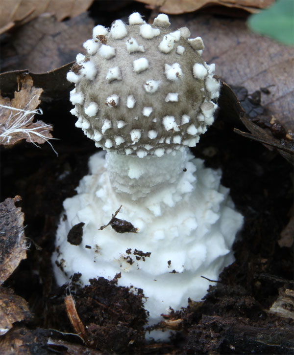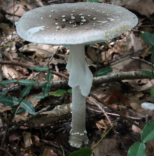 傘の径は7,8センチ 綿屑状のイボ 早落性の白いつば
