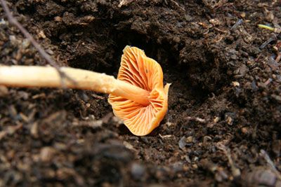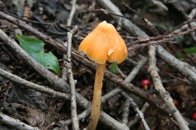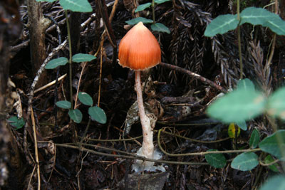| 小型のキノコでかさに突起がある。 次は白イボカサタケを見てみたい。 | |