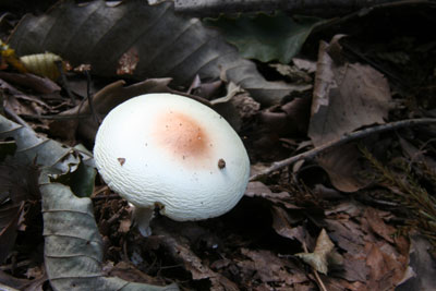 柄にはドクツルタケと同じ模様有り。 若い個体は中心部の赤みが弱い。