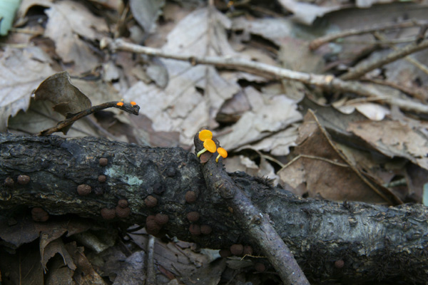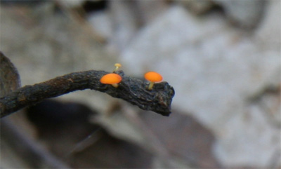 この日は台風通過でお湿りはあったが、暑く雨の少なかった夏の影響でキノコの発生はこの小さなキノコを除いて皆無であった。