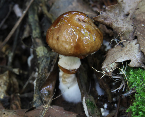 | 径は6〜7センチ ぬめり成分が剥げ落ち白くなってしまうのが早いため、側の茶色の個体に気づかなければ不明種となっていた。 |