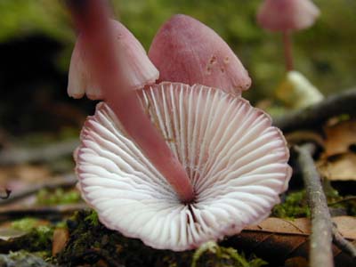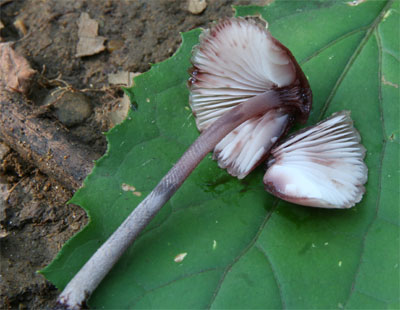 | かわいらしい小型のフリルの付いたキノコ。傷つけると血のような液体が出る。 また似た仲間にオレンジ色の液体をだすアカチシオタケがある。 | |