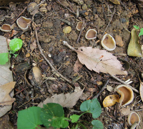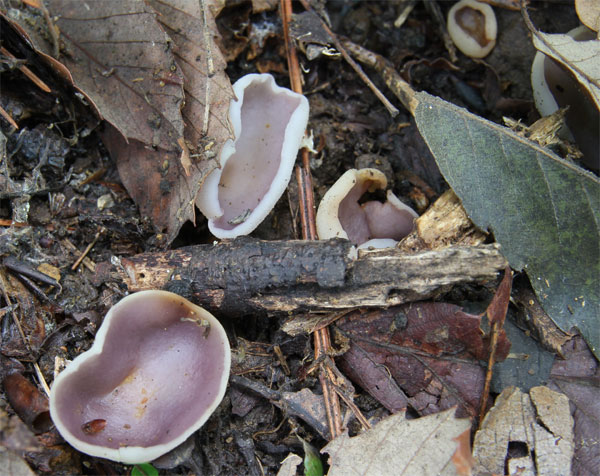 環境や成長過程で、ふじ色が退色した個体は?チャワンタケとなってしまう。
