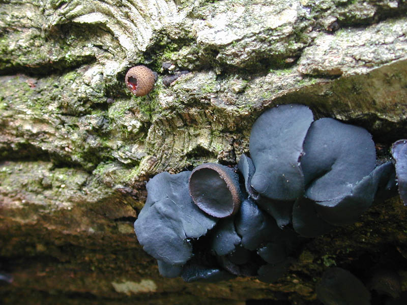 コナラ製のフェンス上に発生していた。触ると手が黒くなる。シイタケのホダ木なども通風の悪い所に置くとこのキノコが発生してしまうらしい。