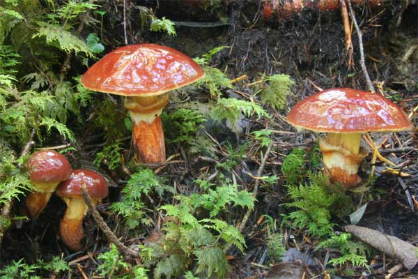 | カラマツ林の樹下に発生するナメコのようにぬるぬるしたキノコ。 マツタケ目的で富士山を歩き始めた頃、出会った人に、「ハナイグチのたくさん採れるような所にはマツタケは出ない」と言われた。あの頃は、マツと付く名前の木には、マツタケが生えると思っていた。長野辺りでは、人気のあるキノコらしいが、味噌汁等でこのキノコだけを入れると、なんだかカビ臭い個体がある時がある。他の種類のキノコと混ぜて料理した方が、ベーターだと思う。刻んで牛乳とコンソメだけのスープでも美味い。 | |