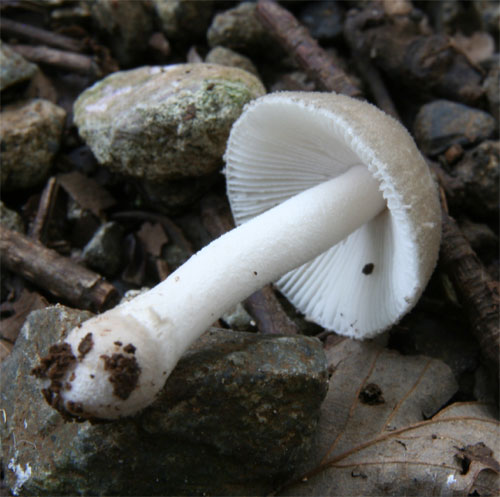 柄は白く基部はやや膨らみ同様の粉が付着している。