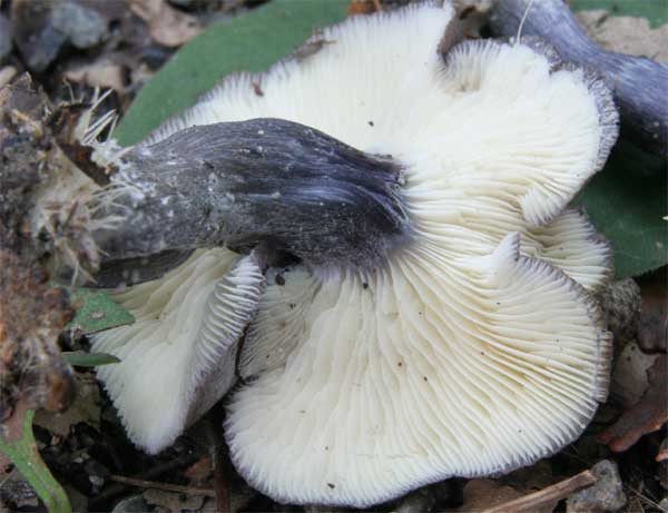 柄は繊維状 基部は軟毛で覆われる ひだは密