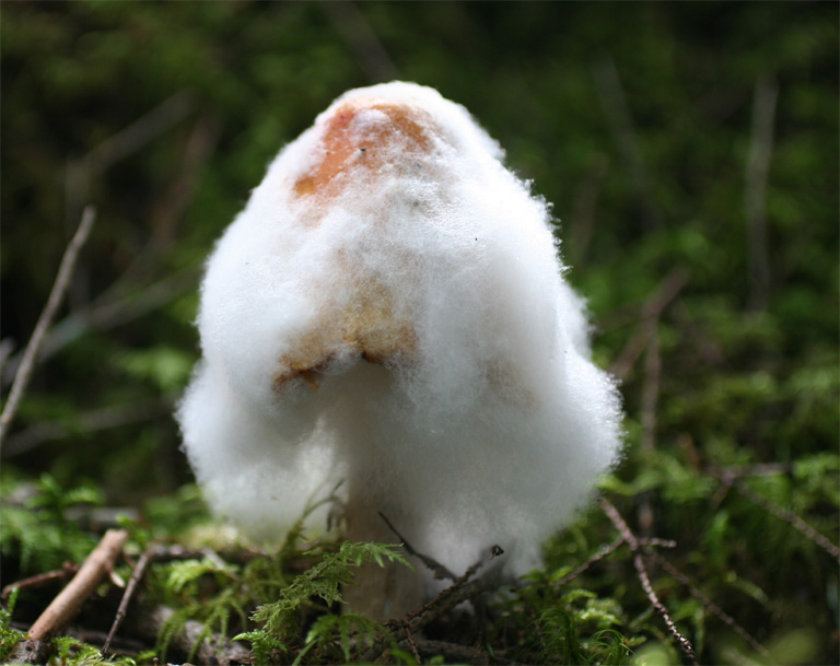 | ベニテングタケに摂りついた綿飴の様なカビです。 | |