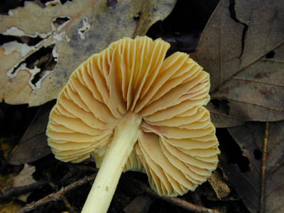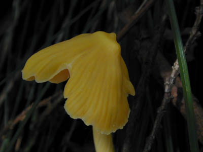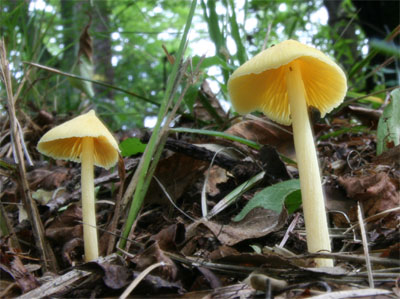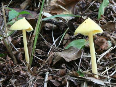 | 傘の黄色いちいさいキノコだが良く目立つ。 キノコの中で、柄が捻れているものがあるが、このキノコも薄い黄色い柄が捻れている。地球の自転とでも関係あるのだろうか? 仲間のキノコに色違いのアカイボカサタケがある。 | |