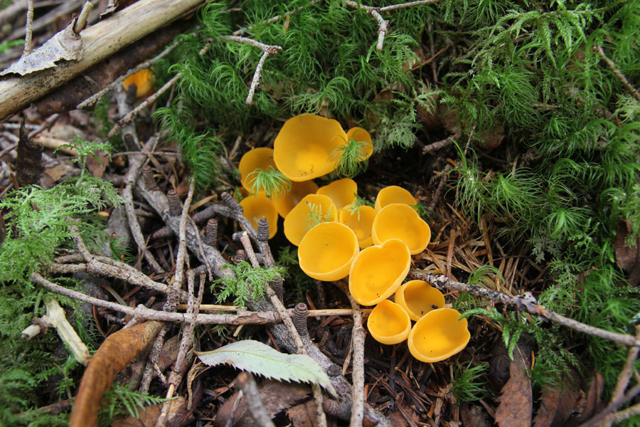 鮮やか黄色が、富士山の緑の上で目だっていました。