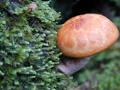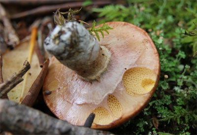 傘には強い粘性がある。カラマツ混じりの日当たりの良い場所を好む。林内の苔むした倒木や岩などに発生する。幼菌時、菅孔は強靭な膜に覆われています。味はグッドですが、図鑑によっては毒キノコ扱いです。