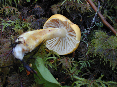 ひだは疎で垂生 柄はやや黄色を帯びる