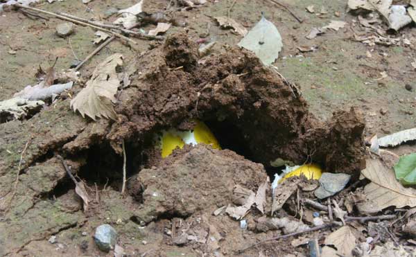 硬い地面を持ち上げている 恐るべしキノコパワー