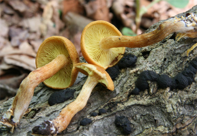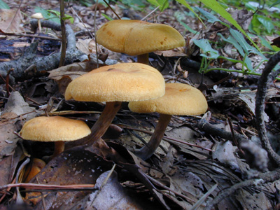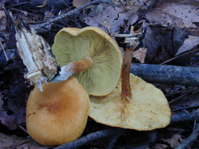 ひだは直生し、傷つけると茶褐色に変色する 傘の縁部は内側に巻く