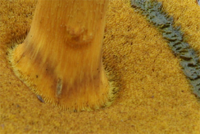 | 孔口を覆っている菌糸が柄の下部に付着している | |