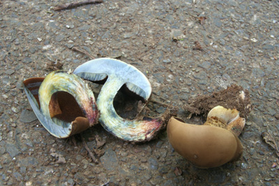 | 肉は全体に白から淡黄色で青変し、柄の基部は赤い。 | |