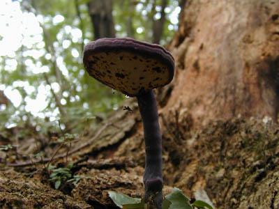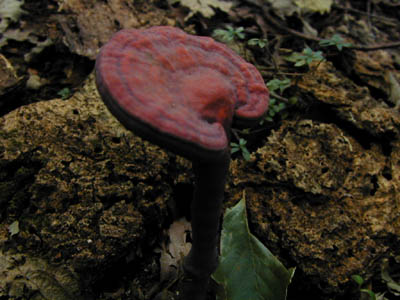 | 万年茸、食べれば長生きできるのか、それともこのキノコの寿命が長いのか? ドリンク剤の含有物を記したラベルなどに霊芝(れいし)と書いてあるのが、このキノコだ。滋養強壮鎮静薬になるらしく、中国などでは、栽培もされている。 シイタケなどと違い傘も柄も固い木質である。 若い物を採取し焼酎に漬けて3年経過した物を飲んでみたが、お世辞にも美味しいとは言えない。 漬け過ぎたか? | |