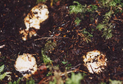 | 96年 4本 、97年 2本 、98年 6本 この年が豊作なのは事実であろうが、過去2年も、探し方によってはもっと採れたのではとか?ウィークデーに採られてしまっていたのでは?とか考えてしまう。 シロを持っている人の話で、オレのシロは1年おきに発生するなどという話をよく聞くが、シロの多くはその年の発見者だけの物ではなく、何人かで共有している事に気づいていない場合が多いと思う。この年は唯一のシロのマツタケを全部採り切ったと言う自信があったが、念の為翌週末確認に行ったが発生無し。 |