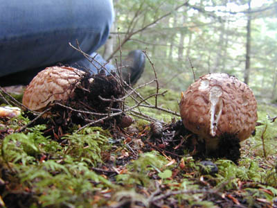 | この時期に、2週間もシロをほったらかしにしてはいけません、飛び出していました。この日は、マツタケはこの場所の3本だけでした。 来年もこのシロで採れると良いのですが・・・・。 この日の他のキノコの収穫は、、ナラタケ、ヌメリササタケ、ハナイグチ、キノボリイグチが沢山と、クロカワ小さいのが3個とショウゲンジとホウキタケが数本でした。 |