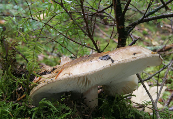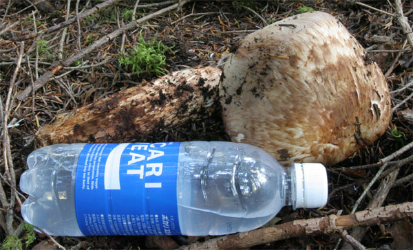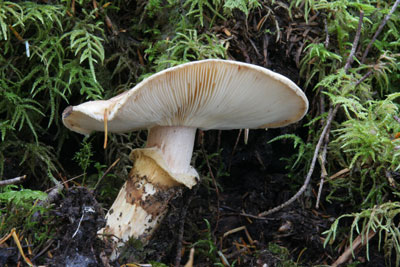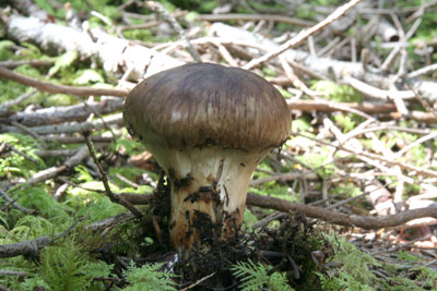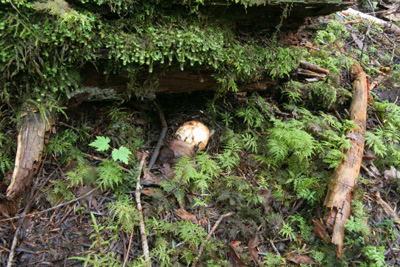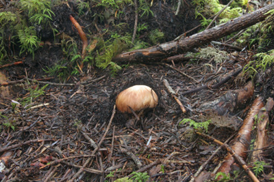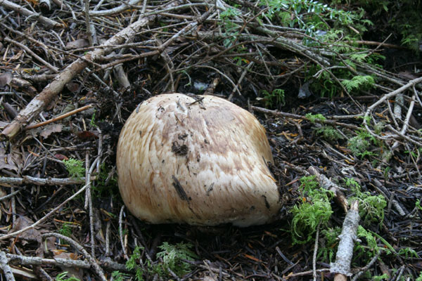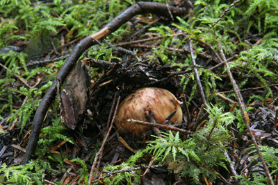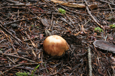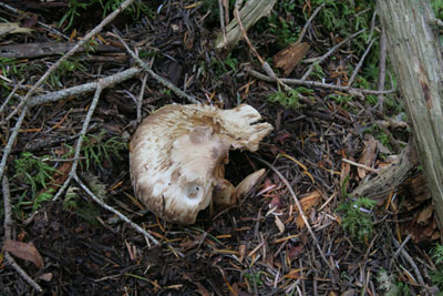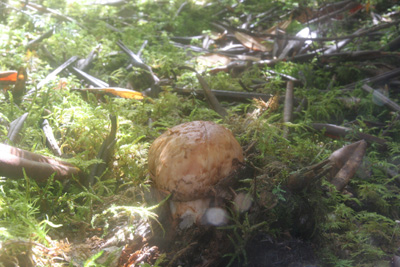内部は傷んでいないが、幼菌時に人か動物に踏み潰されたと思われる。 |