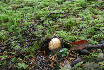 | 先週から雨が降っていないようで、傾斜のある所ではキノコが干からびていた。そんな状態のなかで友人がなんとか小さいながら、貴重な一本をゲットした。過去のシロ以外の場所で標高も高い所でした。その他の数少ないシロでは発生は確認できませんでした。 全体的にキノコの出も良くありませんでした。 苔の中で乾燥から身を守って、じっと耐えているショウゲンジと、条件の良い場所でたまたま育ったクロカワがそこそこ採れた。 雨が今後の発生を左右するように思える。 雨乞い。 |