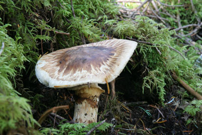 一番標高の高いシロとなりました。 遠くから見た時にはなんのキノコだろうと思いました。 傘の鱗片が流れ落ち、トップがハゲていて親近感がありました。 |