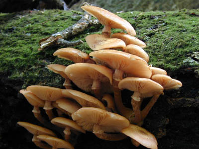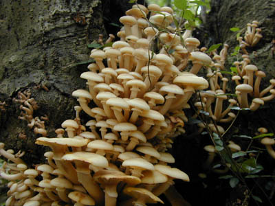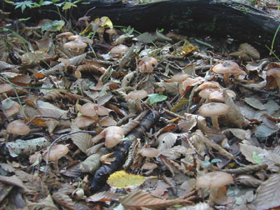 | 10月6日 狭山丘陵 ↑ワタゲナラタケ? | 狭山丘陵 10月28日 ↑ 白っぽいタイプ |
