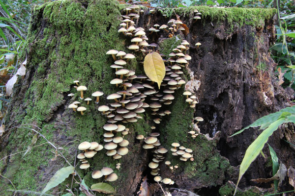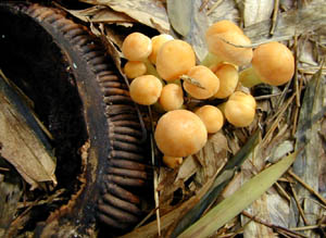 ![]() 竹の切り株に発生したニガクリタケ ↑ |