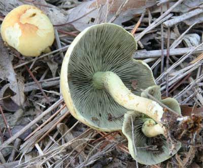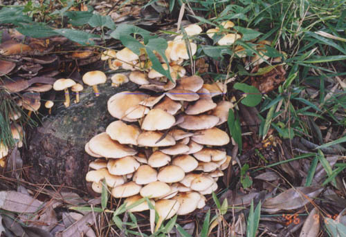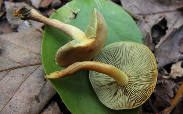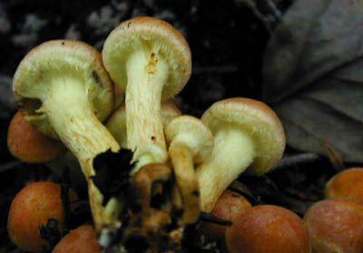 | 地元では最もよく見る毒キノコ。クリタケによく似ていて、発生場所も同じような所なので、注意要。 色はクリタケよりレモン色が強いが薄いのもある。幼菌では時々キノコ5年目にして、困ってしまう個体がある。 ニガグリとクリタケ比較 |