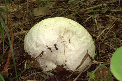 | 少し開け草地で、バレーボールを一回り大きくしたくらいのサイズのものを、3つ発見した。食えるらしいが、食べたいと思わない。薄暗い森の中で出会ったら、不気味だろうが、発生環境はやや明るい草地のようだ。 | |