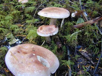 マツタケのシロのそばで見つけた、キノコ販売店のおじさんに名前を教えてもらった。 サクラシメジより美味しいらしい。 ぼくの持っている図鑑には、このキノコは、載っていない。 おじさんを信じて、来年は食べてみよう。 |