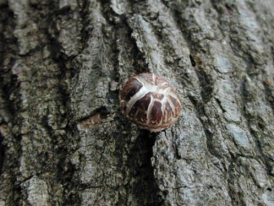 | 遊歩道脇のコナラの柵に発生していた。 冬の終わりに幼菌を見つけ、春に大きくなるのを楽しみにしている人が沢山いるだろうと思われる場所だ。 近所には、ハウスでシイタケを栽培しているので、菌が飛んで来たのだろうか? | |