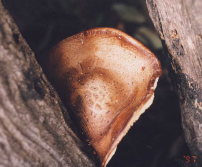| 地中に半分埋もれたコナラから発生したいた。美味そうな状態だが、犬の散歩コースのため採るのは諦めて撮るだけにした。 | |