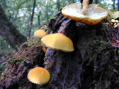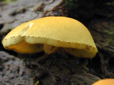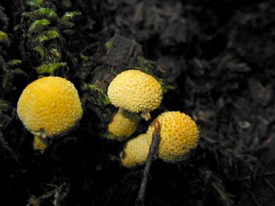 細かい粒粒状の傘で、黄色からレモン色