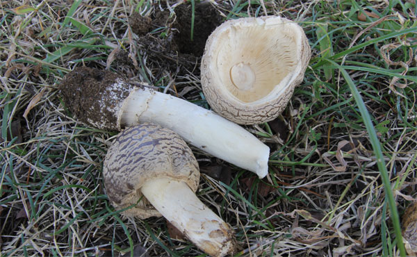 | ヒマラヤスギの下で大きな個体の群生を見つけたので翌日カメラを持って行ったが、ほとんどが蹴散らされていた。 | |
