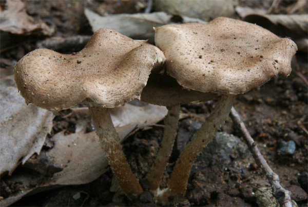 | キノコを始めた頃、地面から発生しているスギタケをツチスギタケと勘違いしていた。 このキノコは明るい通り端に発生するが小型で地面と同じ様な色でまったく目立たない。 おそらく過去にも発見しているかもしれないが、あまり興味が湧かず写真にすら収めなず素通りしてきたのかもしれない。 しかしこのキノコに出会えた事で、スギ○○タケ などスギということばの入ったキノコの整理がだいぶできてきたような気がする。 スギタケ スギタケモドキ ツチスギタケ ヌメリスギタケ ヌメリスギタケモドキ あ〜 ややこしい。 | |