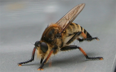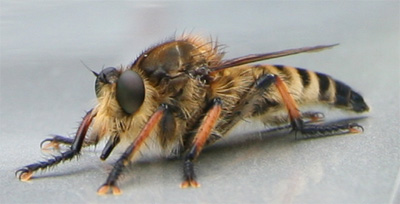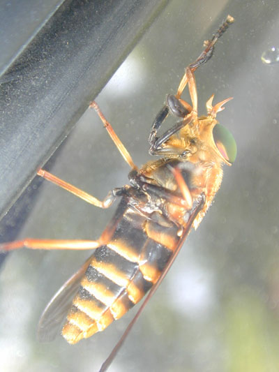アカウシアブ 2001年7月22日 奥多摩 林道に車を停めて降りたところ、このアブが数匹車の周りを飛んでいたので、危険を感じ車内に戻り窓ガラス越しにアブを撮影した。 最初はススメバチの攻撃だと思ったが、よく見るとススメバチと少し違う。 車の周りには10匹ほど増えたアブが車に体当たりをしてくる。 車を走らせ移動しても追っかけてくるのが見える。 どうもアズキ色の4輪駆動車を牛と勘違いしているのか? 後で知ったのだか、このアブに刺されると、2 3週間痛みが持続するそうだ、こわー。 |