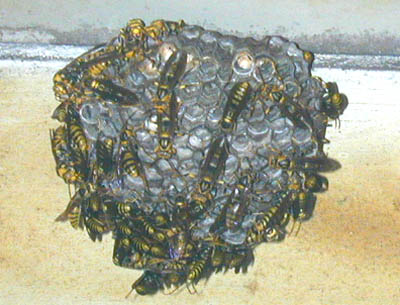 | スズメバチ これ以上、恐くて寄れませんでした。 | 自宅アパート換気扇ダクトに作られたハチの巣 |