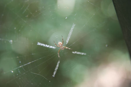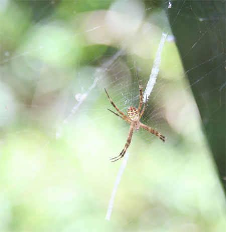 このクモは巣に隠れ帯(白い帯)を作ります。