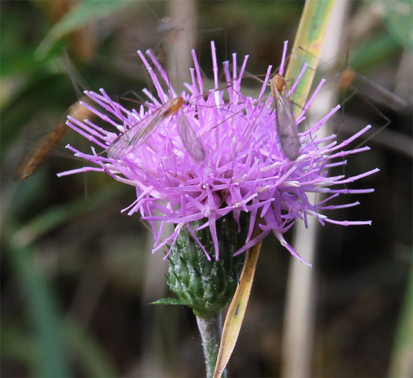 クチナガガガンボがアザミの花の蜜を集団で吸っていた。