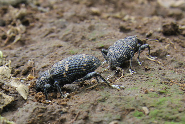 クリアナアキゾウムシ?のカップルを撮影しようとカメラを向けるとオスは直ぐに逃げてしまった。