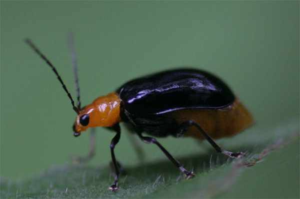 オレンジ色の頭部に真っ黒な目玉のコントラストがおもしろい。