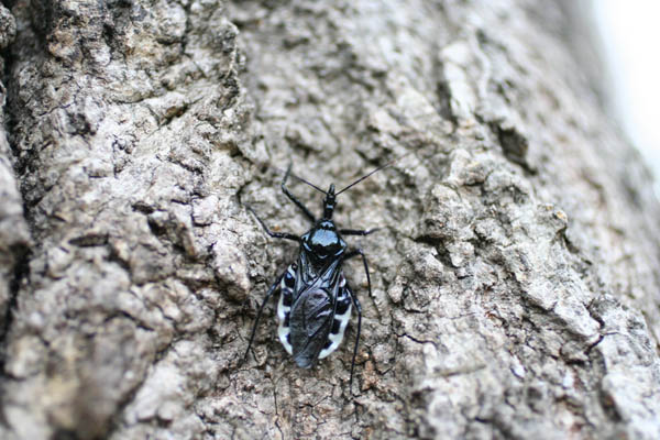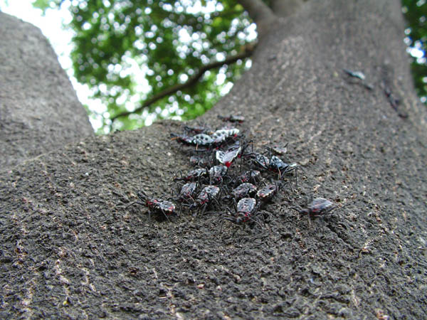 | クワガタ採りに熱中していた僕の子供時代には東京近辺にはこんなに奇抜な昆虫は生息していませんでした。 外来の昆虫です。 2006年春にはあちらこちらで発見しました。 |