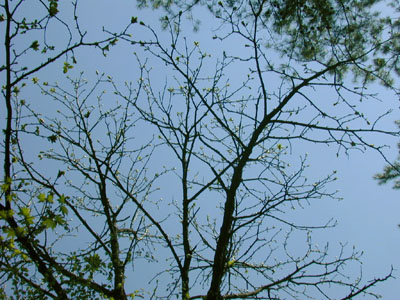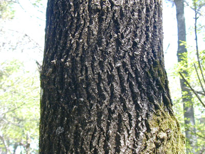 | 大木の樹皮は、クヌギの溝を深くしたような感じである。 | 大木の新芽(なんだかよく分からないですけど) |