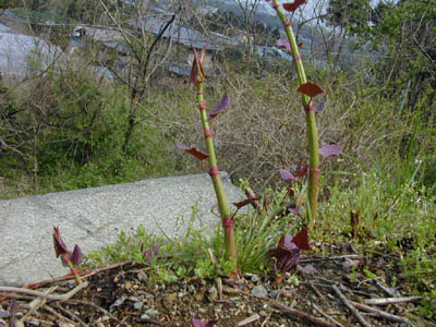 若葉を天ぷらにしたものを山梨のうどん屋で食べたが美味しかった。茎は少しすっぱいようなニオイがある。